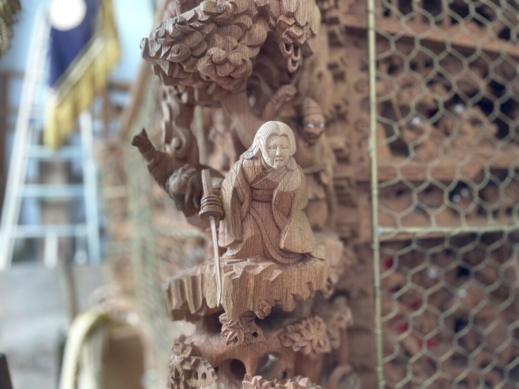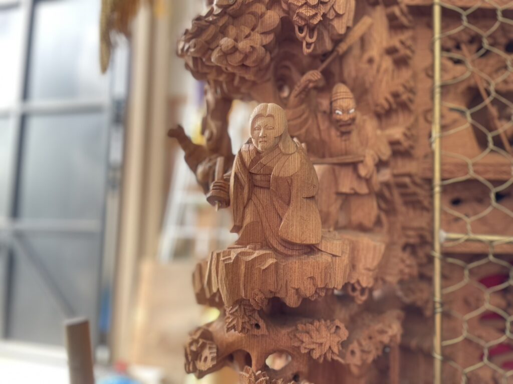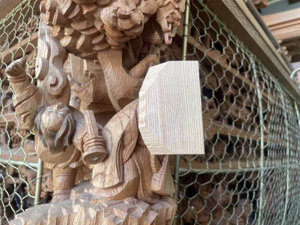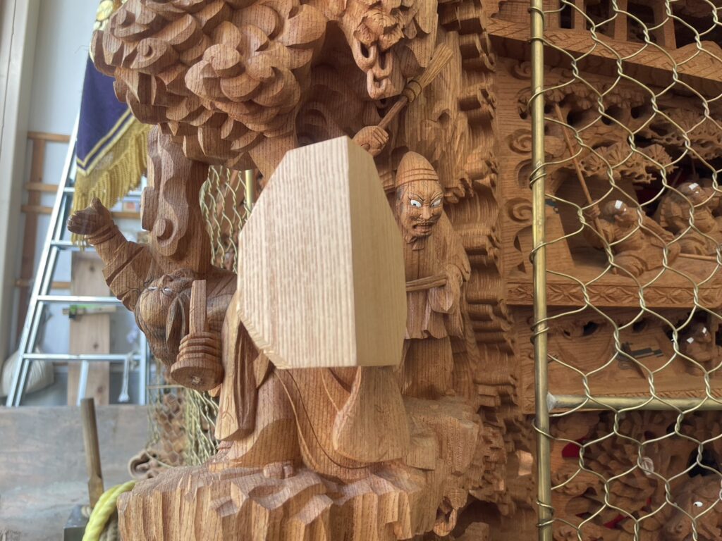 本祭りまで1週間という限られた時間しかなく、駆けつけていただいた植山工務店さんと彫陽さんの絶妙な連携により見事に修復いただきました。