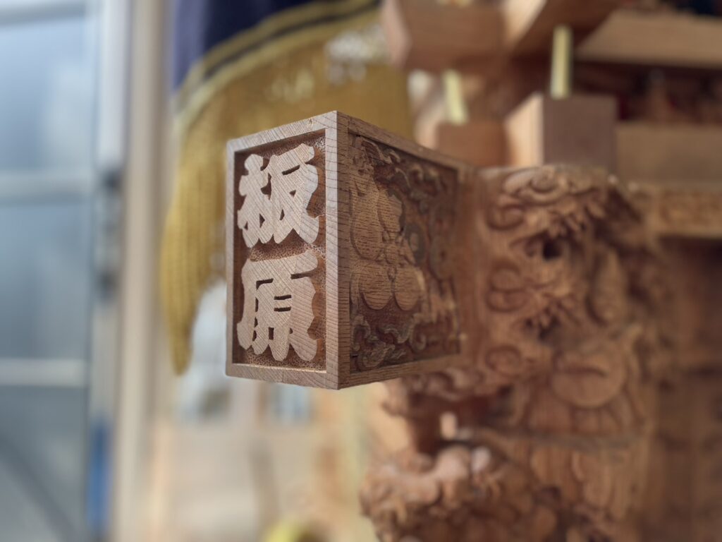 縁隅木というだんじり前方の隅の部分、町名が記されている箇所ですが、上記のように欠損してしまいました。