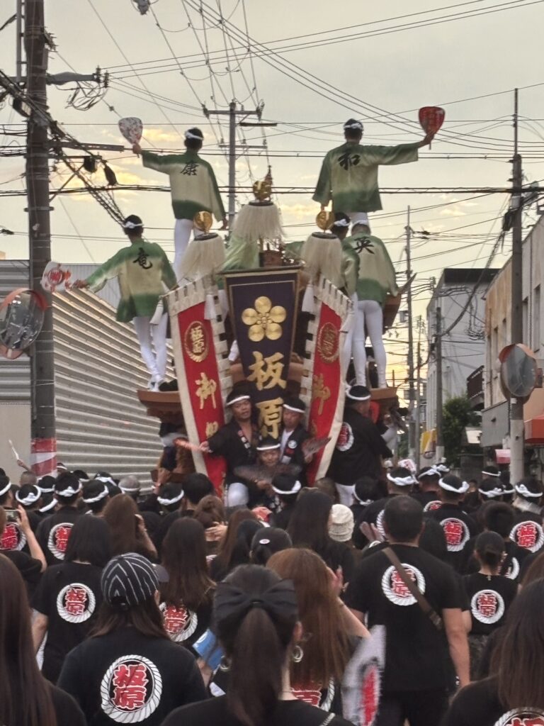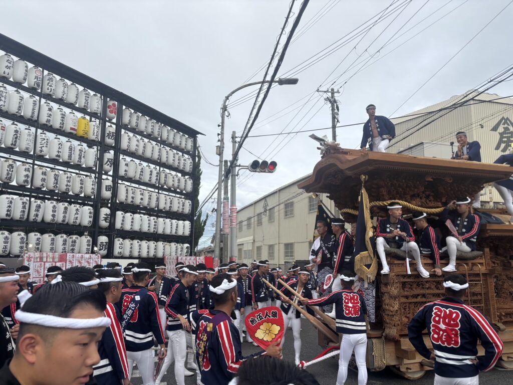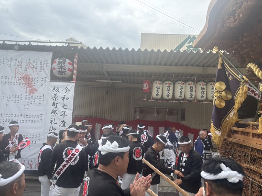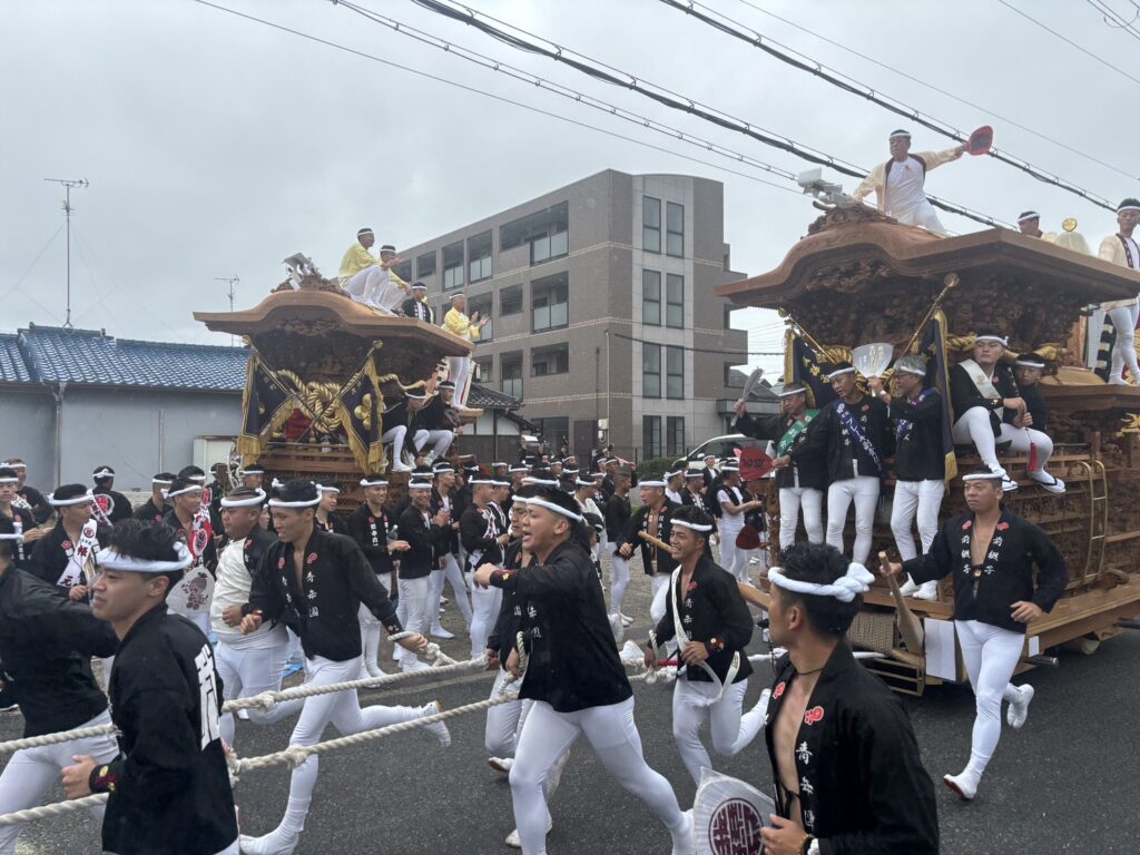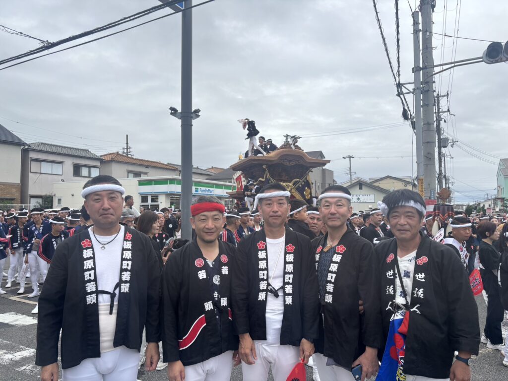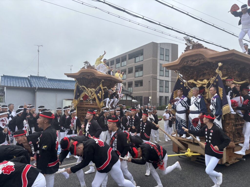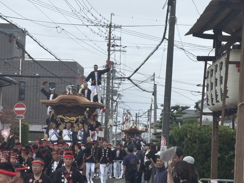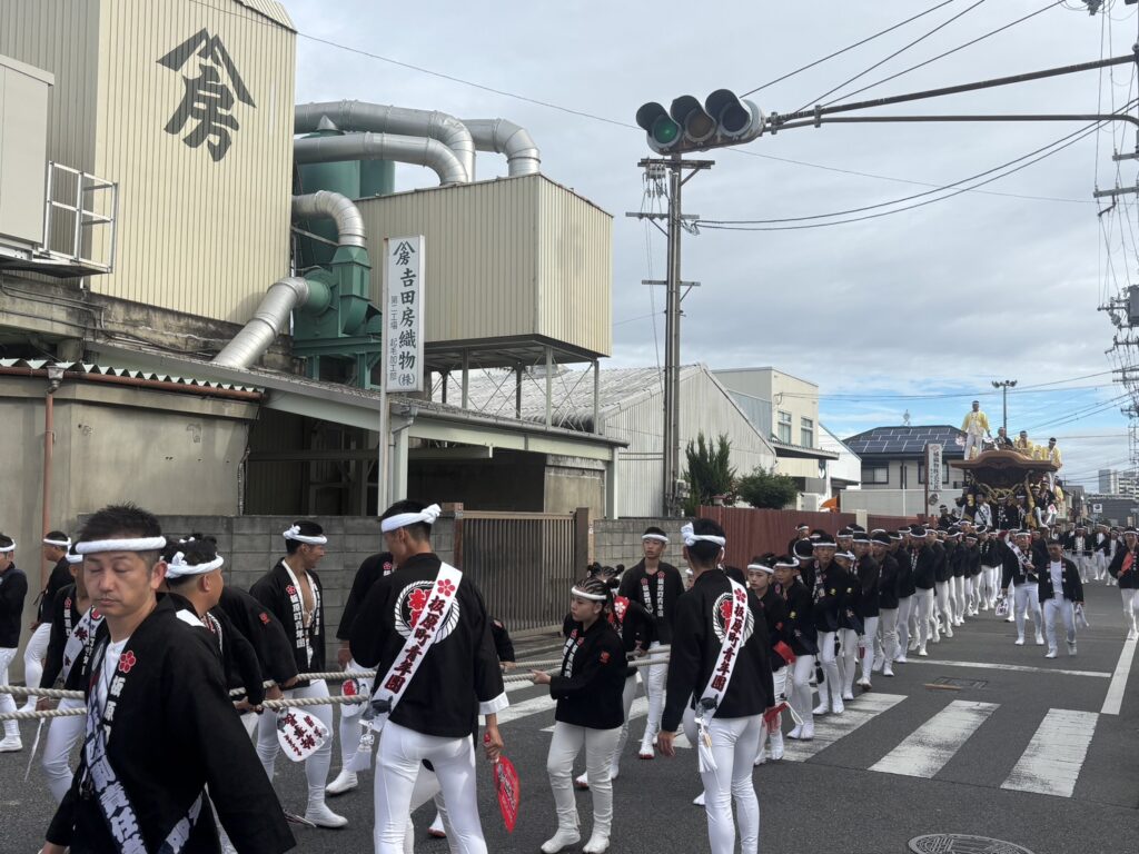 少しの町内曳行のあと、板原町ファミリーマート(板ファミ)前にて4町が揃ってパレードが行われます。