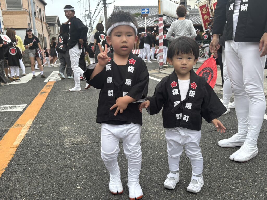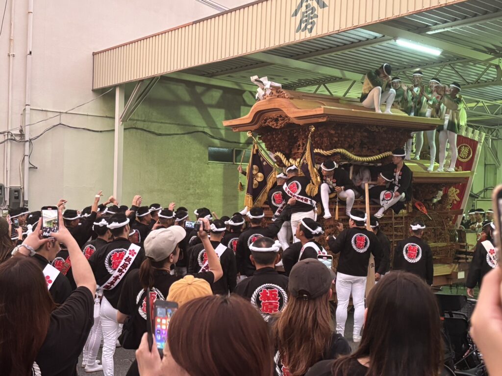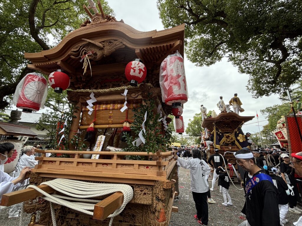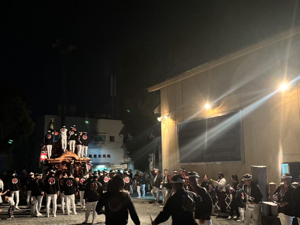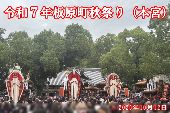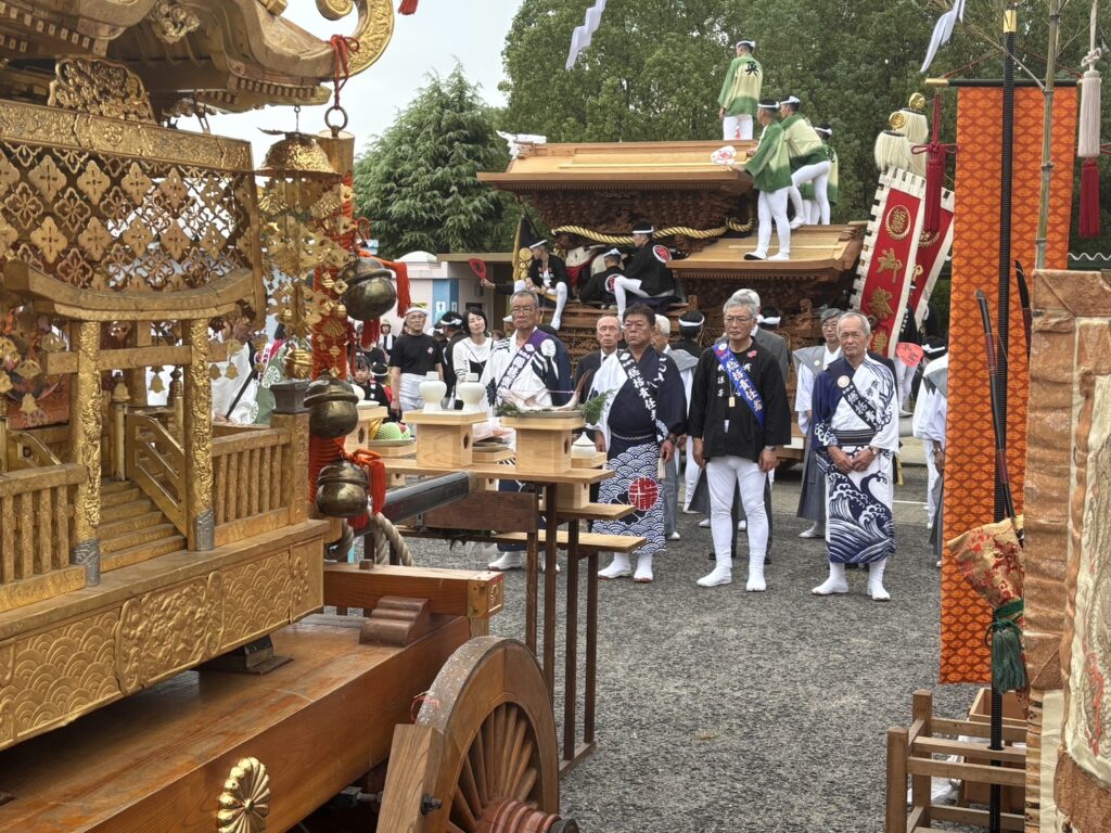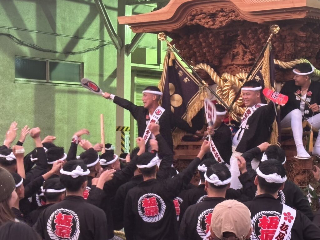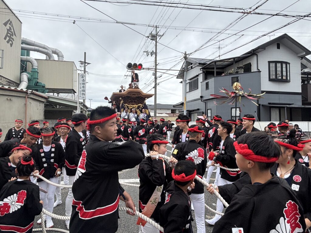 少しの町内曳行のあと、板原町ファミリーマート(板ファミ)前にて4町が揃ってパレードが行われます。