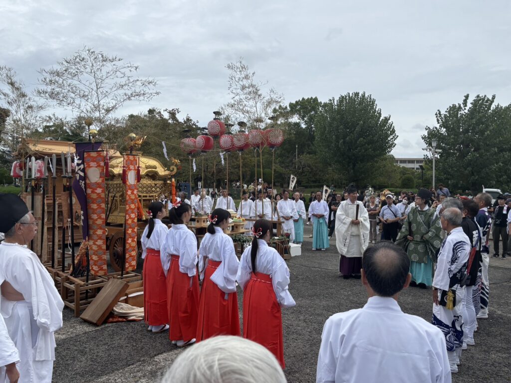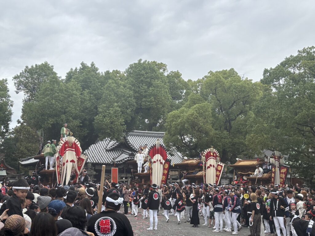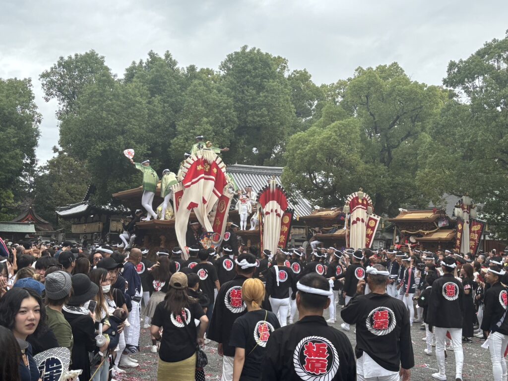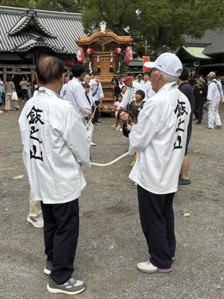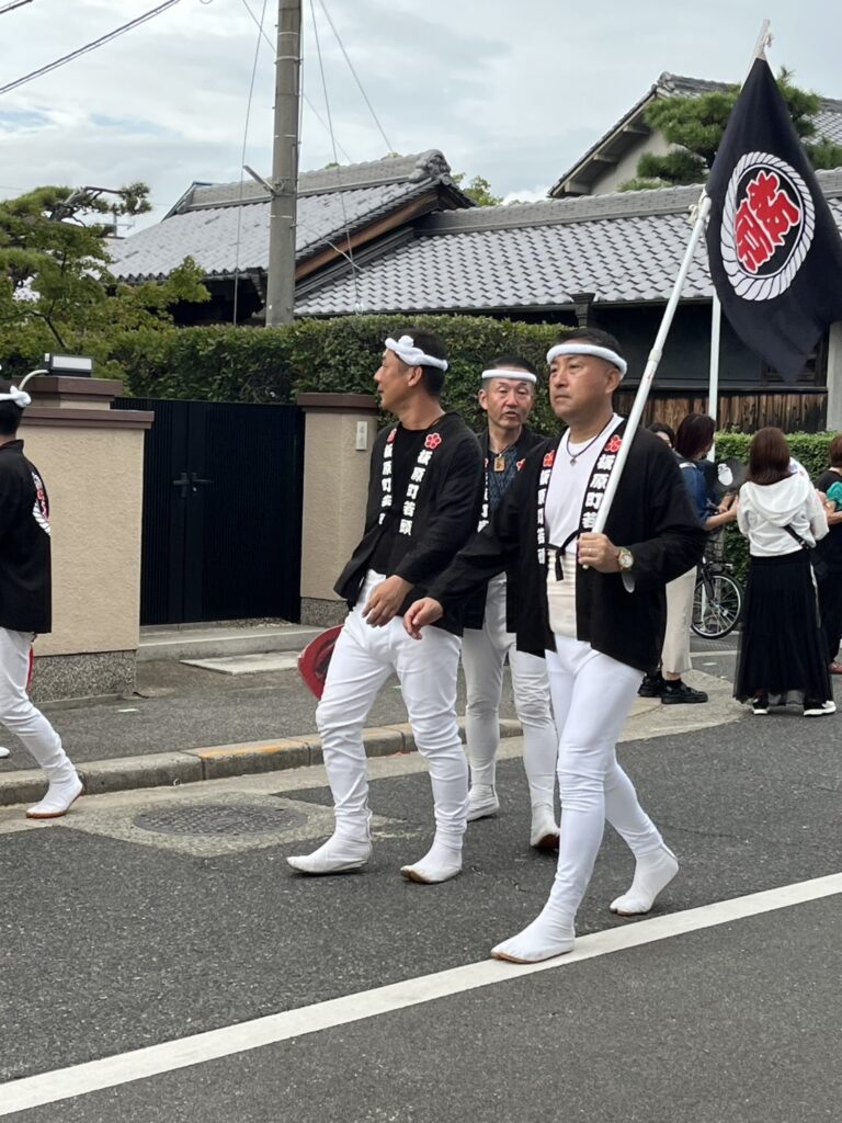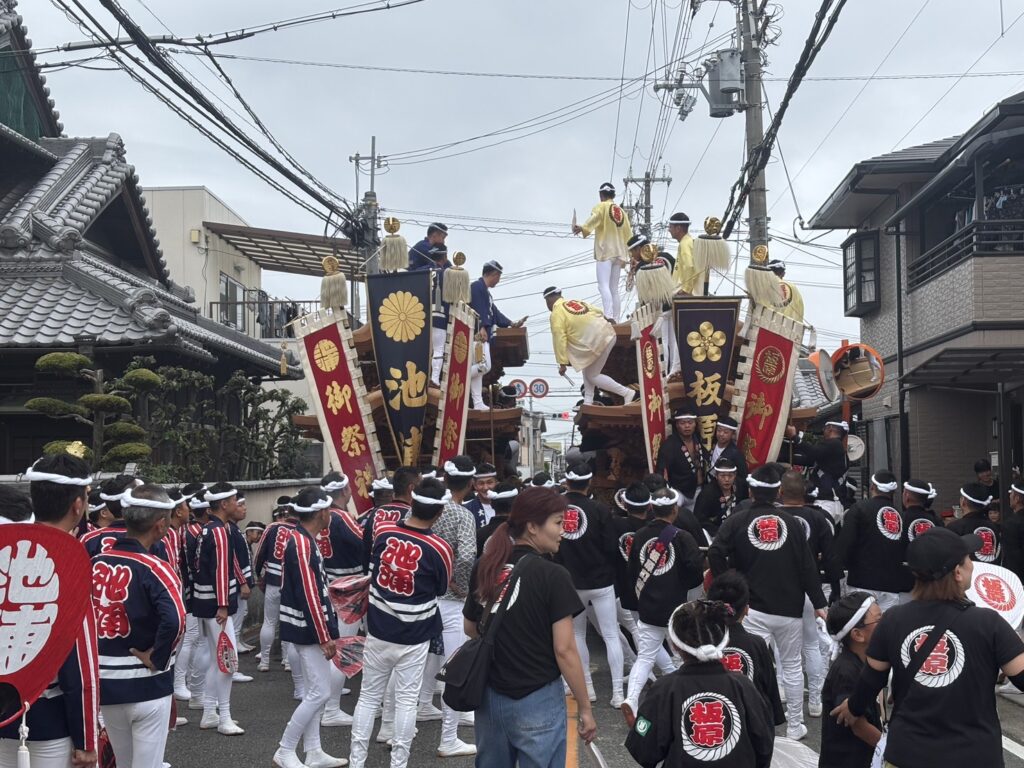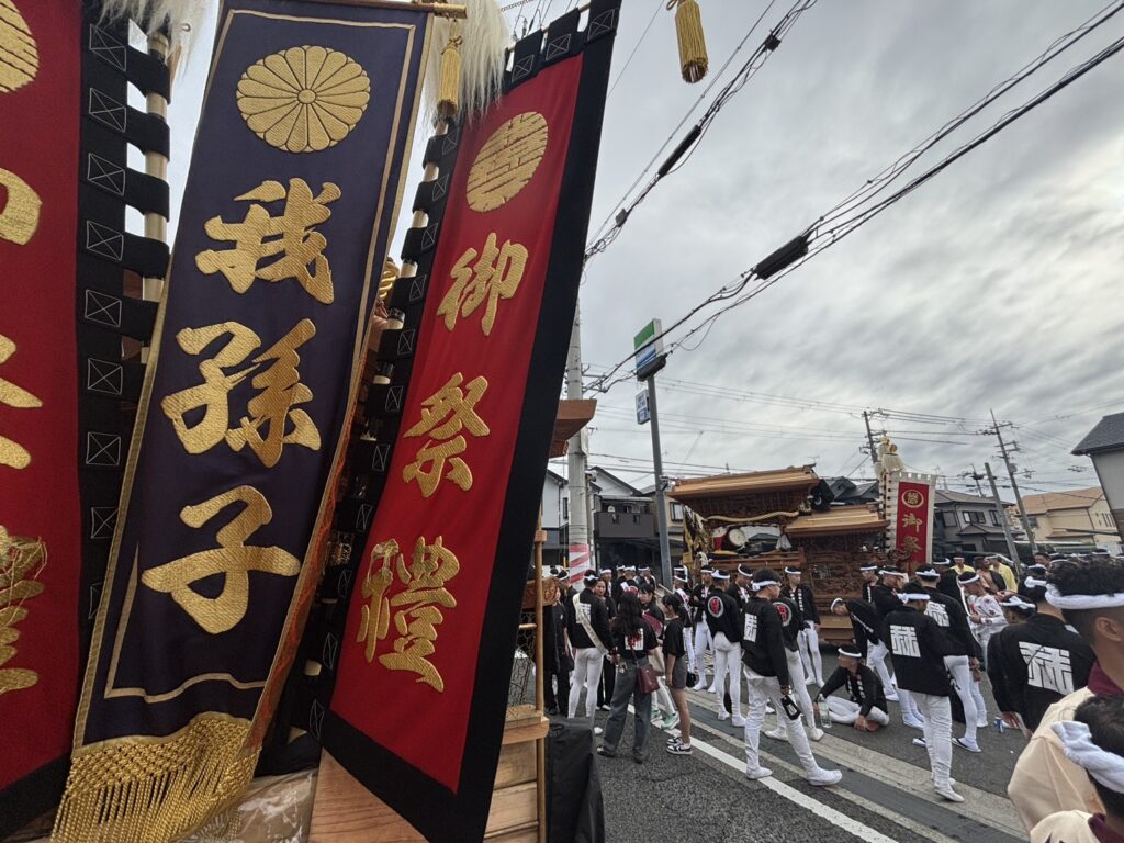 少しの町内曳行のあと、板原町ファミリーマート(板ファミ)前にて4町が揃ってパレードが行われます。