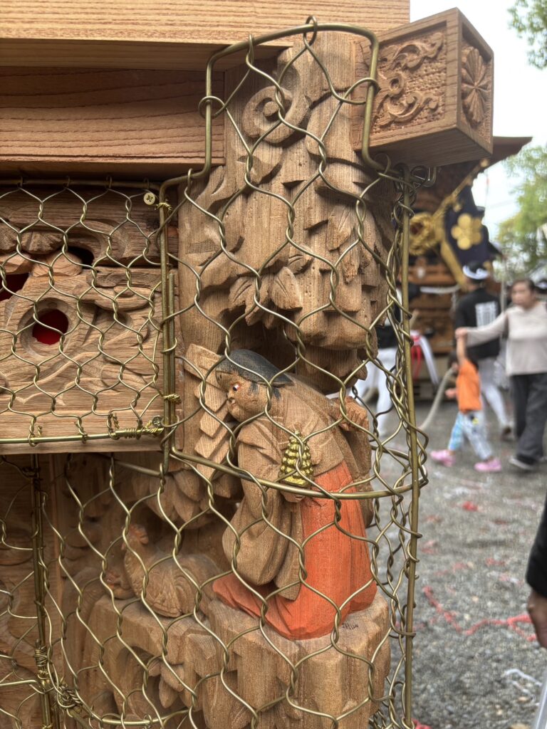 平成以降の新調だんじりが並ぶ中、最も拝殿に近い場所で鎮座しているのが