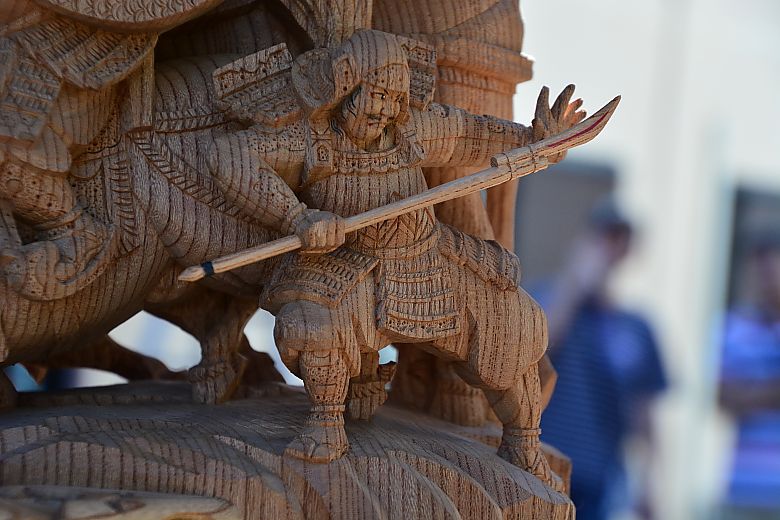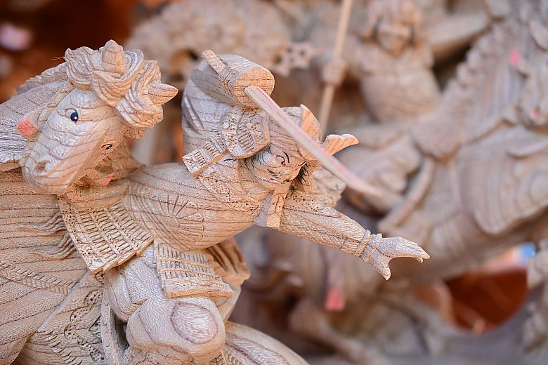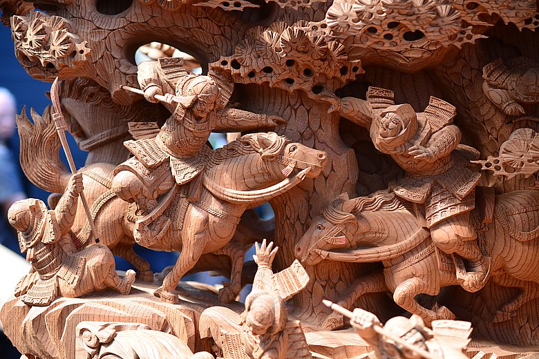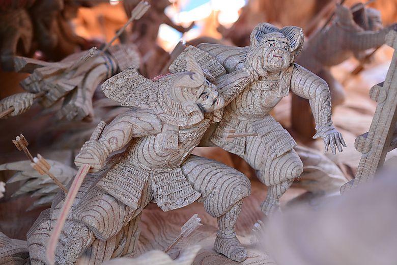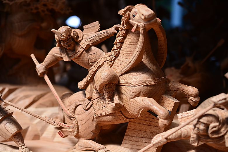 動と静の入り混じる緊張感漂う様子が彫陽・山本陽介師の手で描かれています。