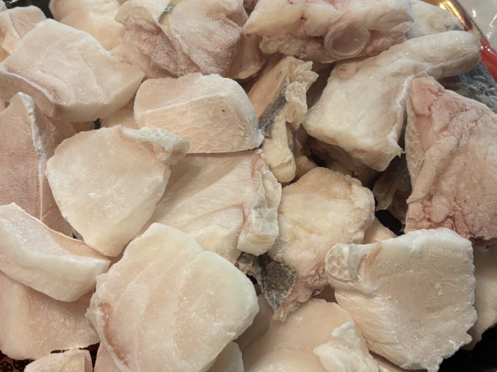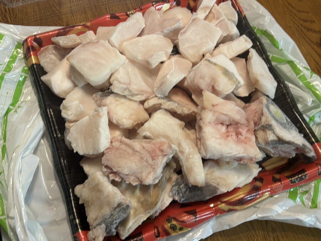 ヨッシャ食堂の業務用急速冷凍庫で熟成した本クエを瞬間冷凍。