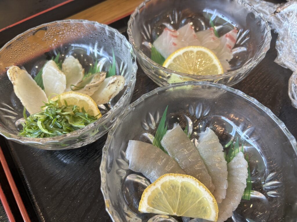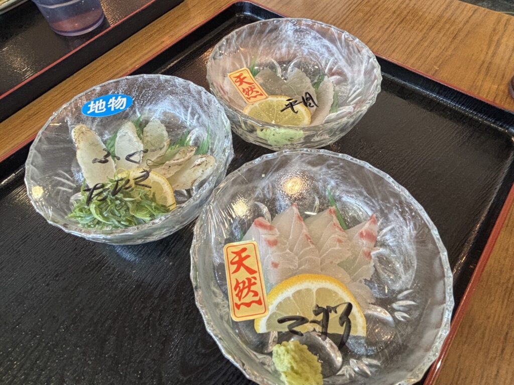 天然の真鯛、ふぐのたたき、天然のヒラメのエンガワ。