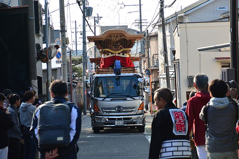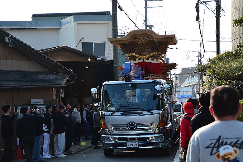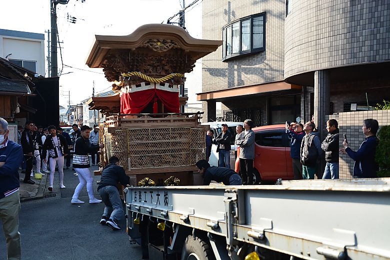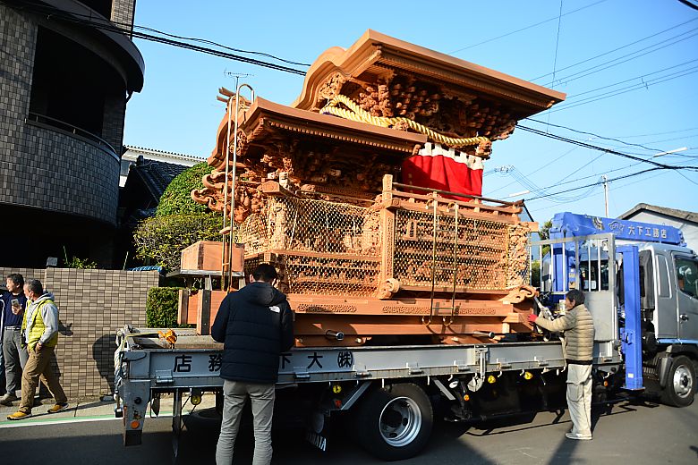 濱之町地車庫前にて待機していると、定刻の午前8時に大下工務店さんのトラックが到着しました。