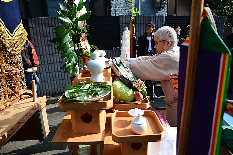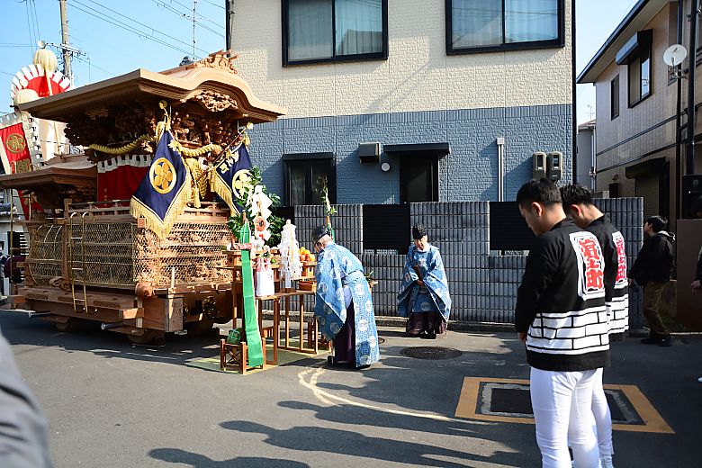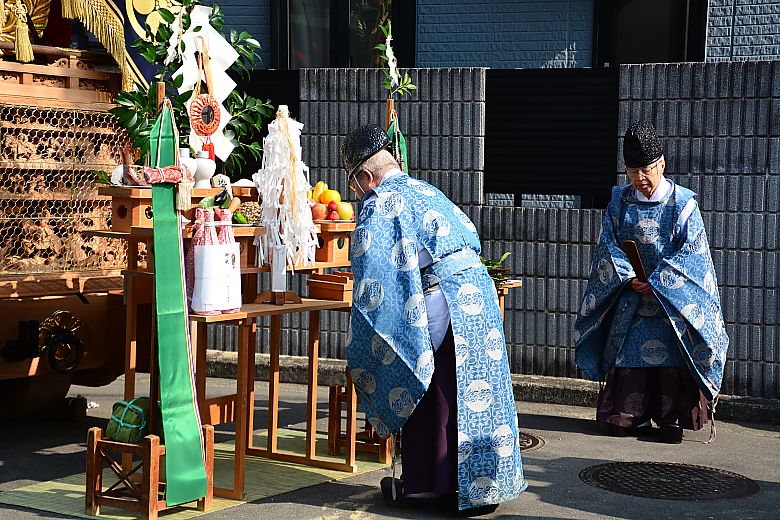 地車庫前にて清祓式が行われました。