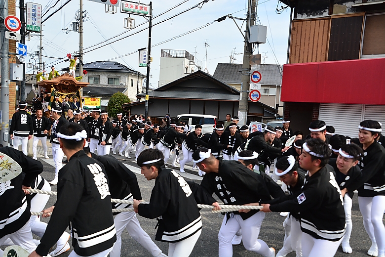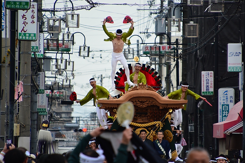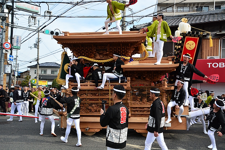 だんじりの曳行シーンを見るのは自身初めてかも…。