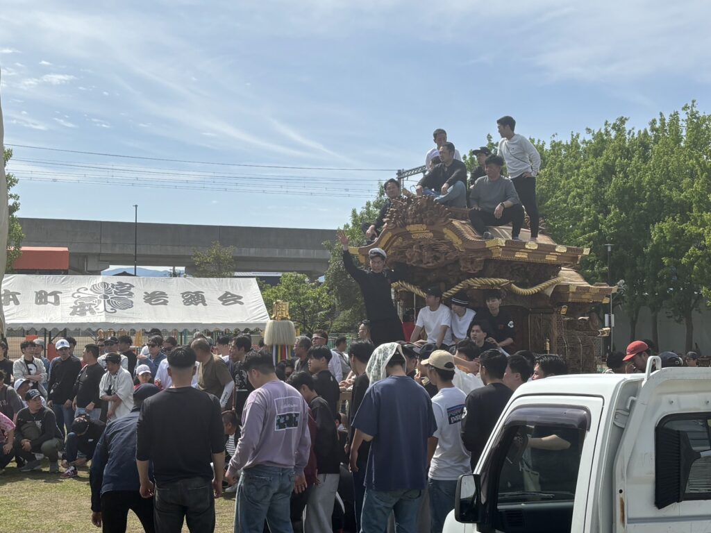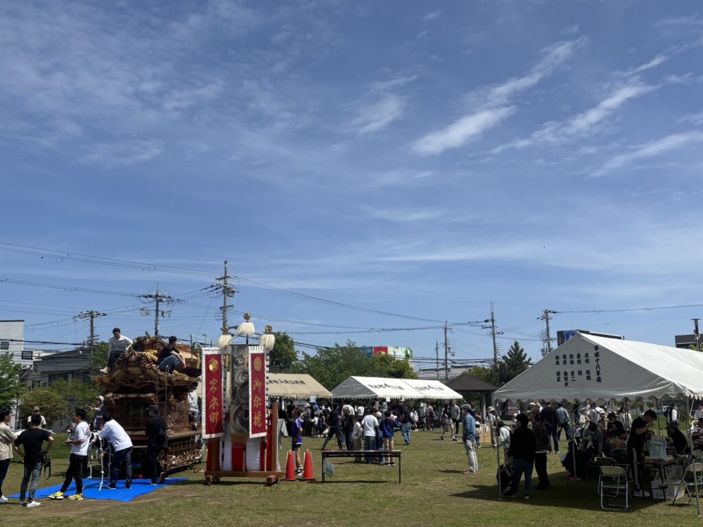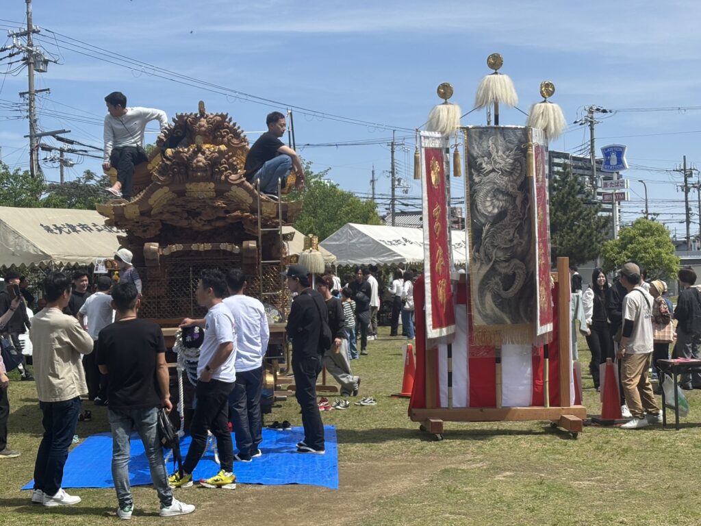 午前10時の開始に向けてすでに地車は敷地内に移動、各種団体がその準備にかかってました。